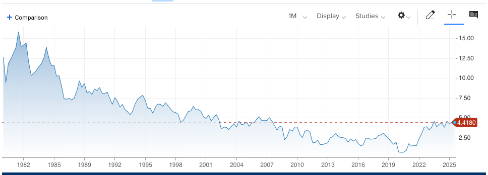 Valtion lainojen keskimääräinen nimelliskorko vuoden 2023 lopussa oli 2,13 %. Vuonna 2025 otettaville lainoille on käytetty 3,0 prosentin korkoa 3 kuukauden korkojaksolle ja 2,9 prosentin korkoa 10 vuoden korkojaksolle. Todennäköisesti lainoittajat odottavat korkeampaa korkoa, kun Suomen valtion lainojen osuus suhteessa bruttokansantuotteeseen kasvaa. Sen takia voidaan olettaa, että myös vuodelle 2029 valtion lainojen korko on vähintään 3%. Tällöin vuoden 2029 valtionvelasta pitäisi maksaa korkomenoja 6,75 miljardia. Se on valtava summa. Se on 75% Orpon ja Purran hallituksen hehkuttamista 9 miljardin säästöistä, joiden tekeminen on tehnyt todella kipeää.